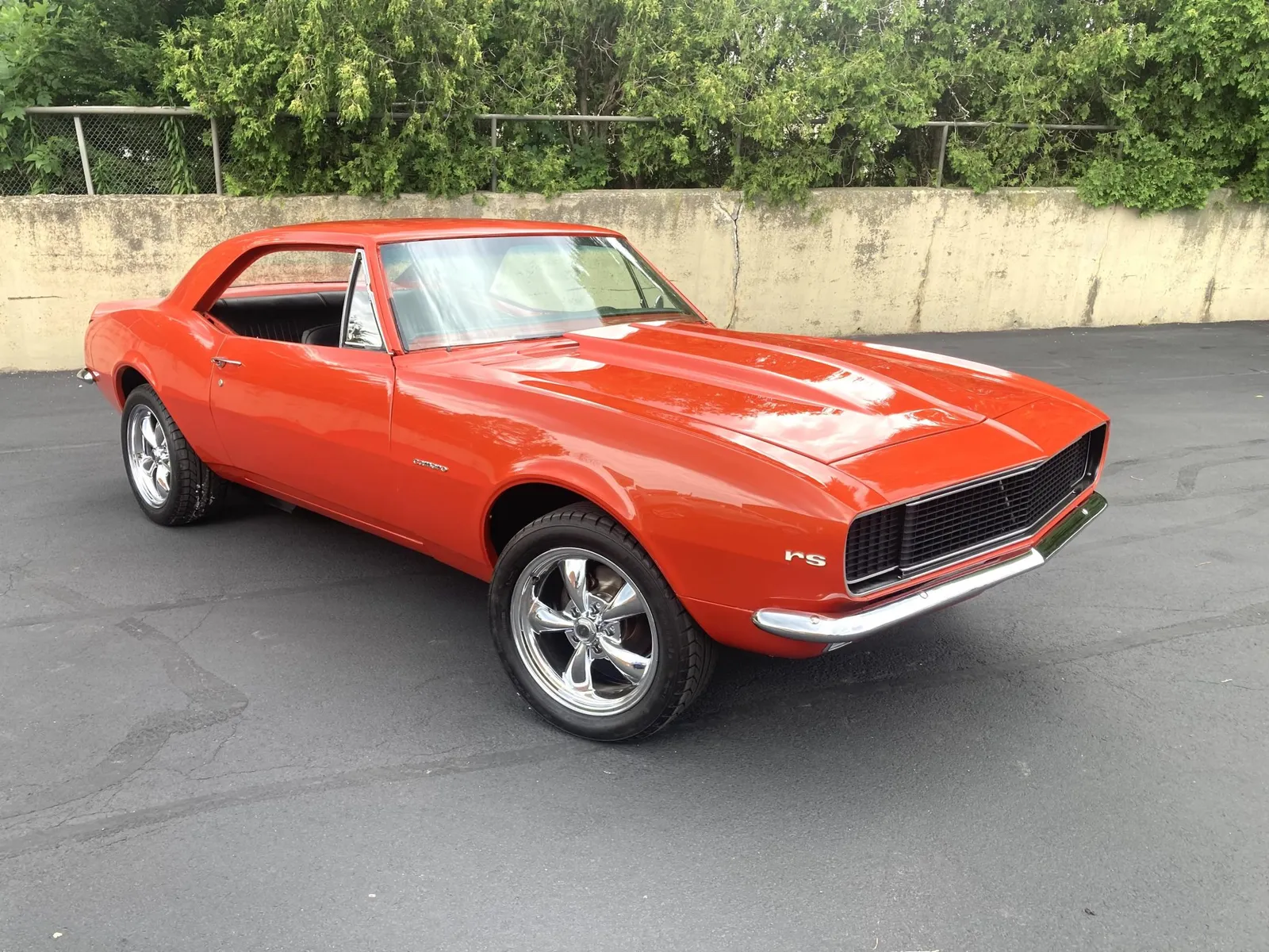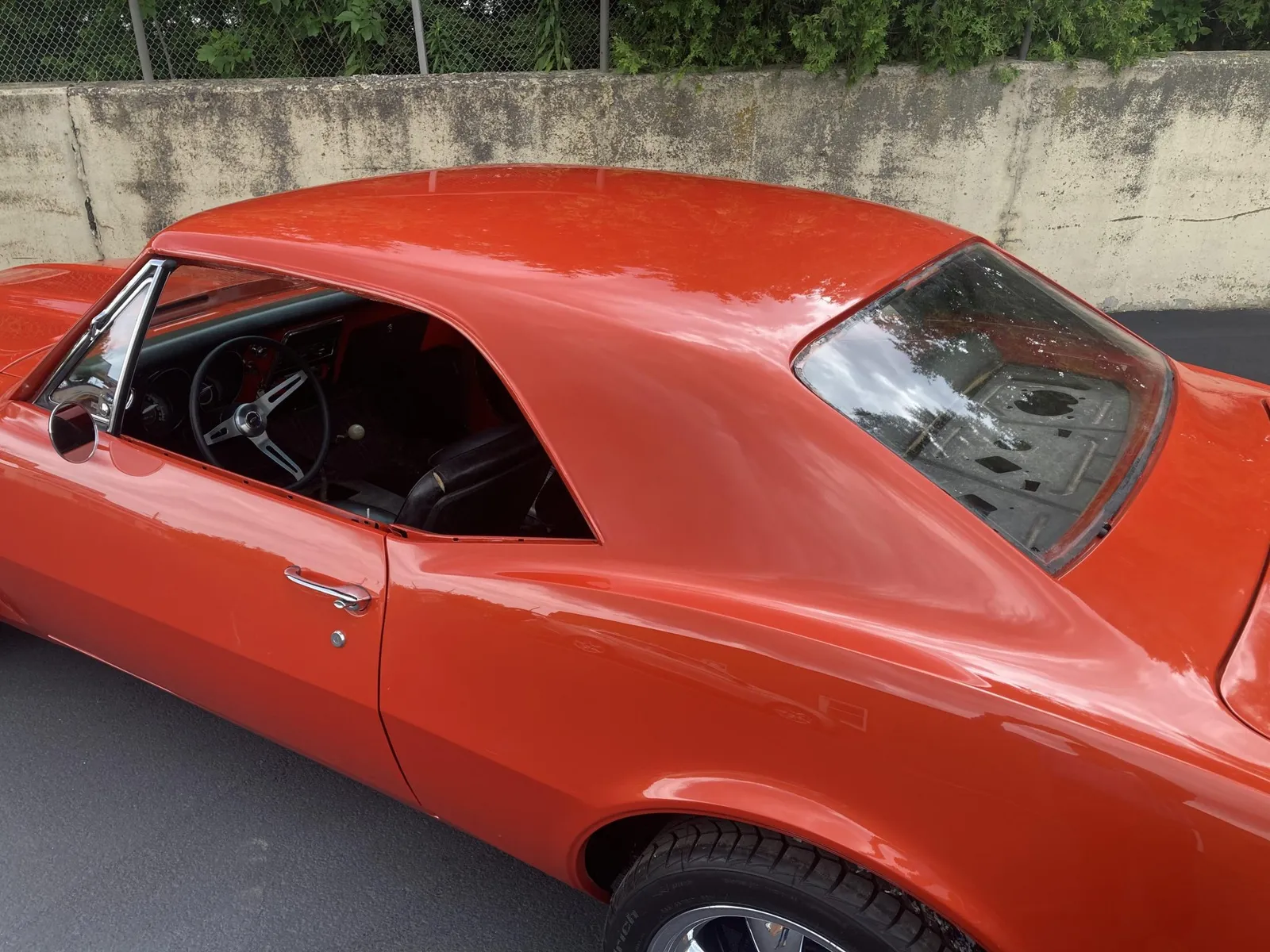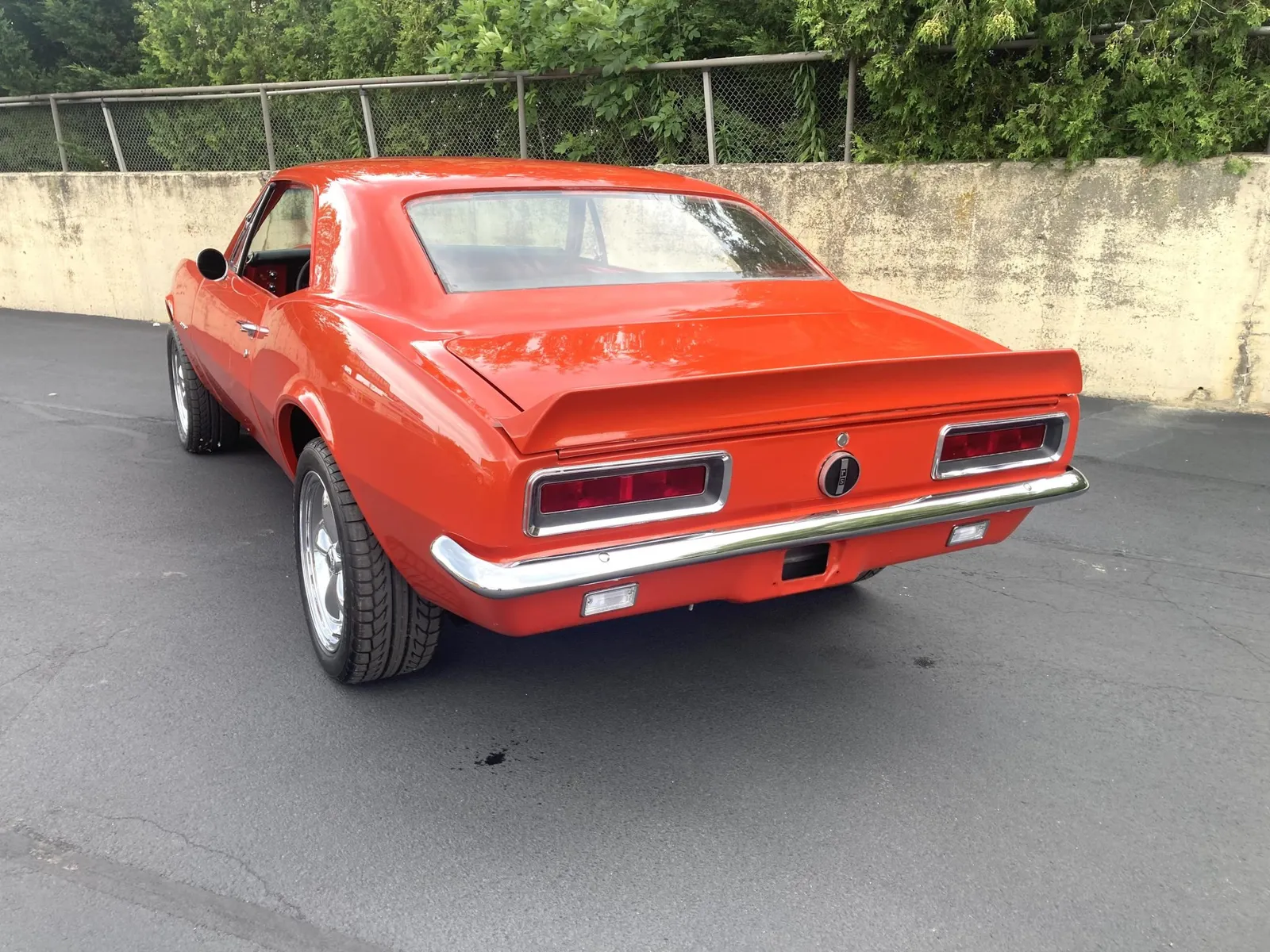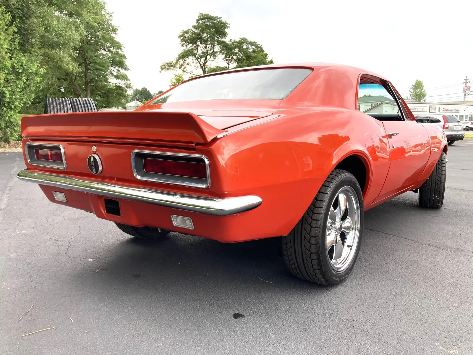 Project Camaro coupe finished in orange over black vinyl and equipped with a 327ci LF7 V8 and a four-speed manual transmission.