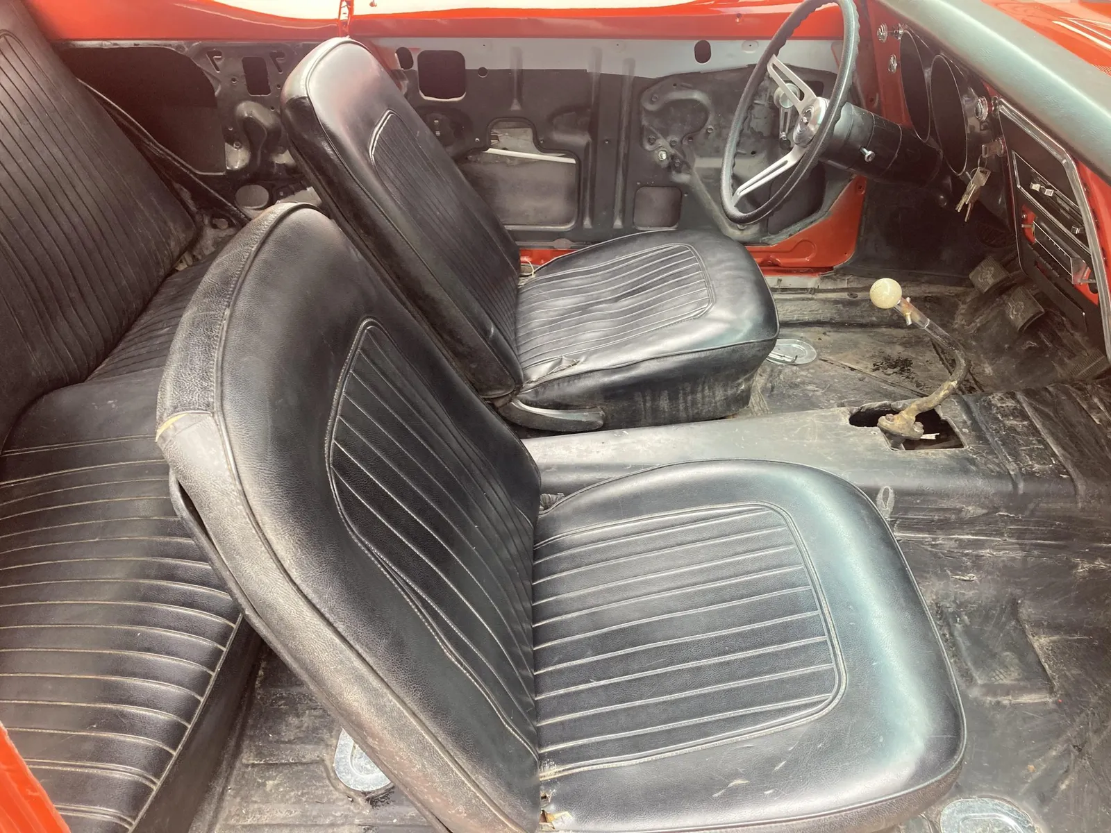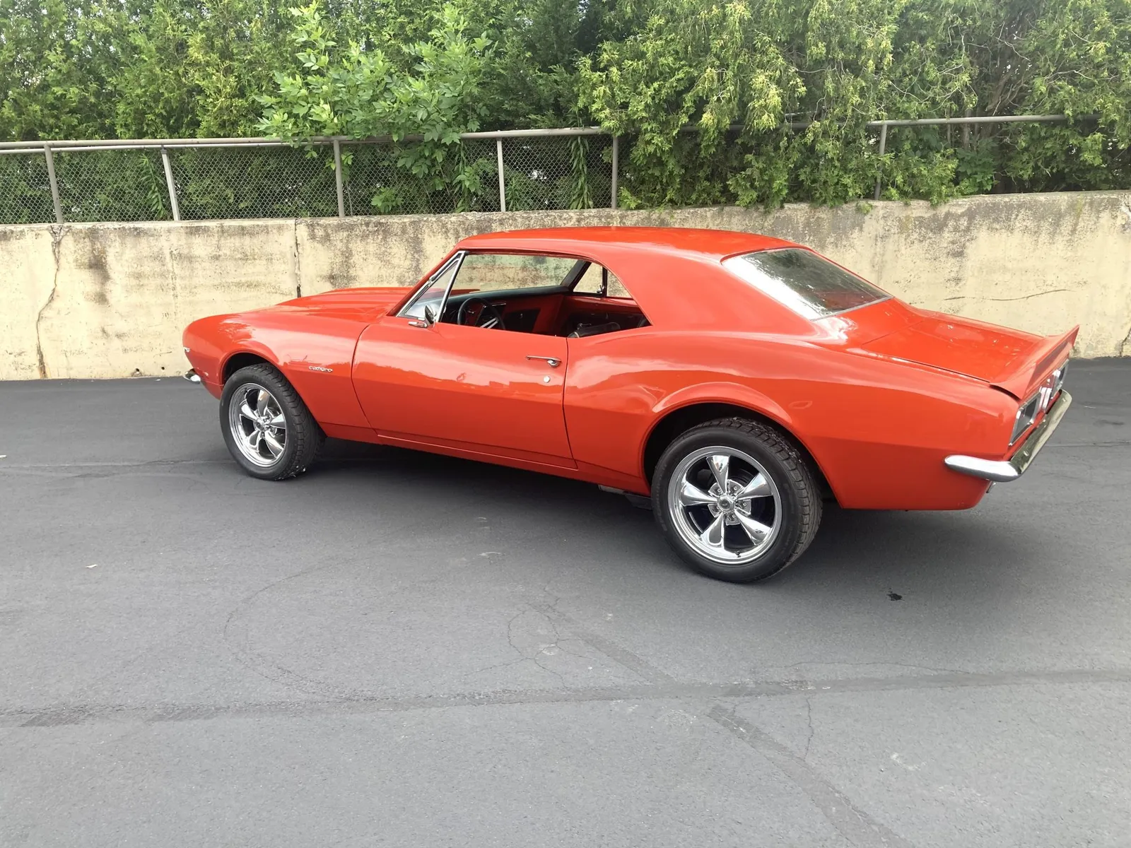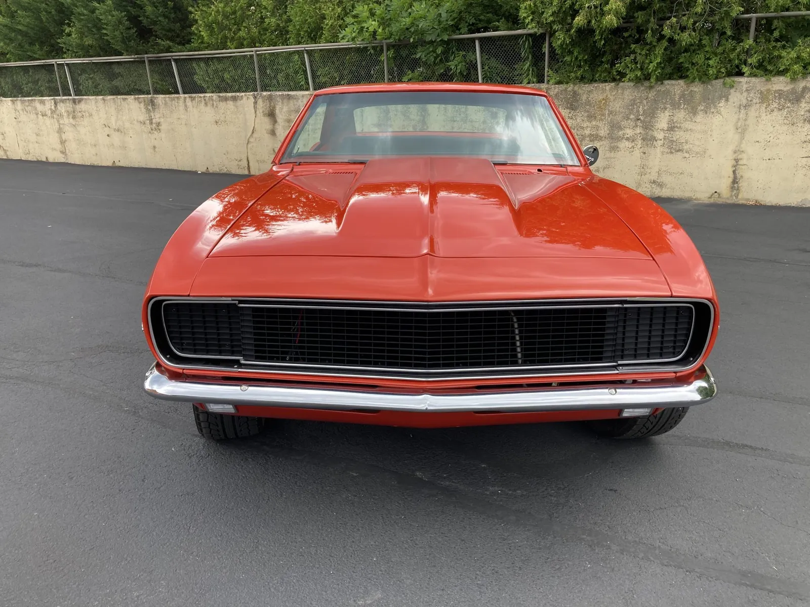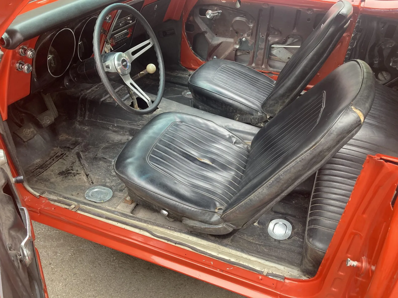 Project Camaro coupe finished in orange over black vinyl and equipped with a 327ci LF7 V8 and a four-speed manual transmission.