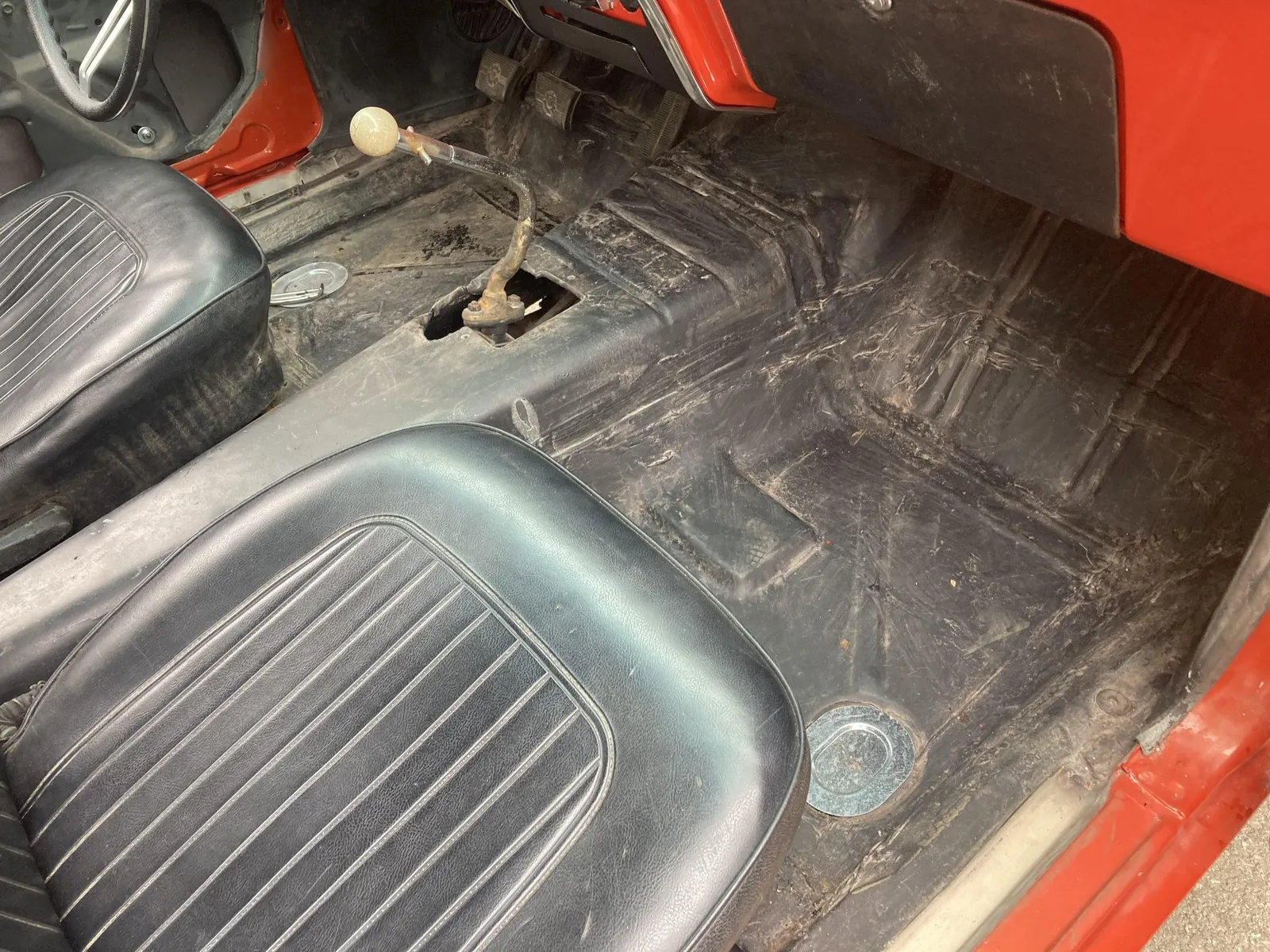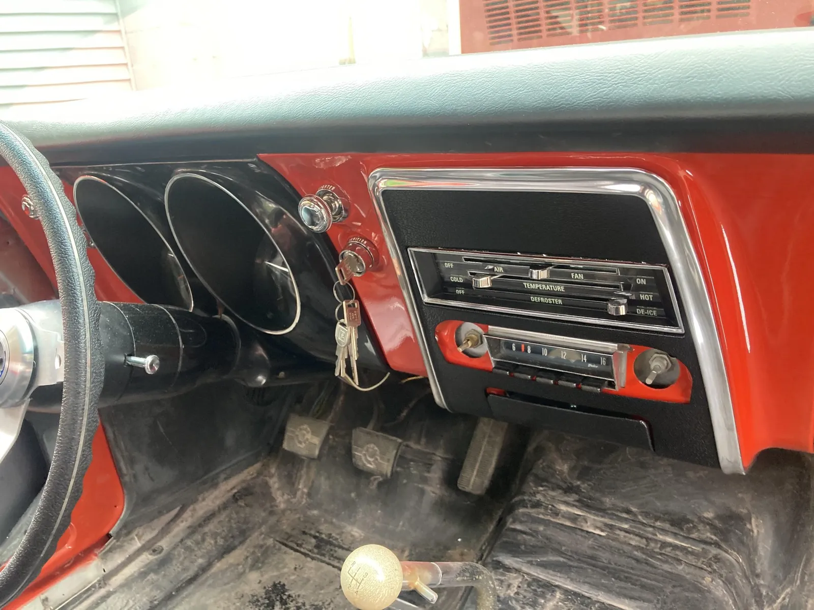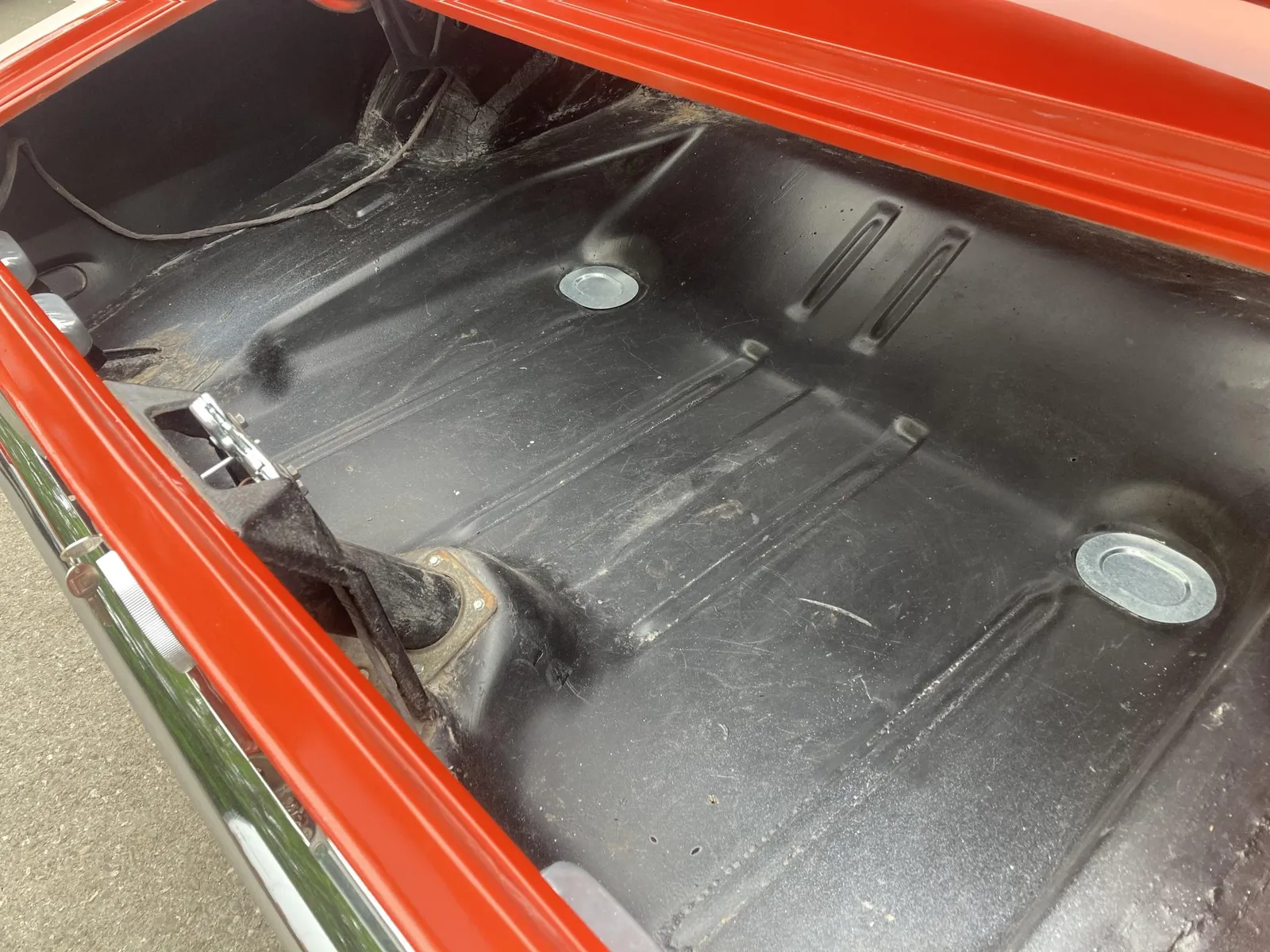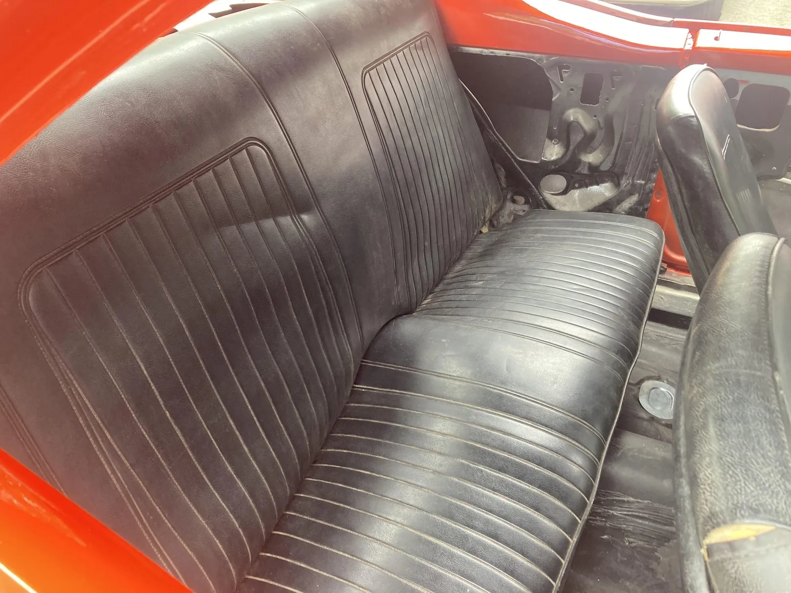 Project Camaro coupe finished in orange over black vinyl and equipped with a 327ci LF7 V8 and a four-speed manual transmission.