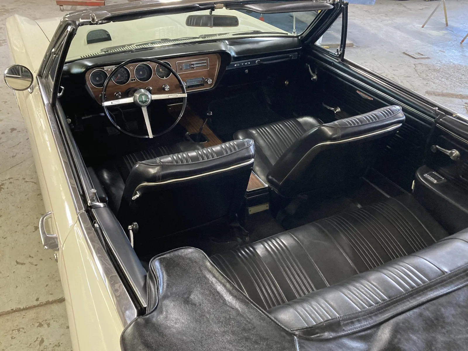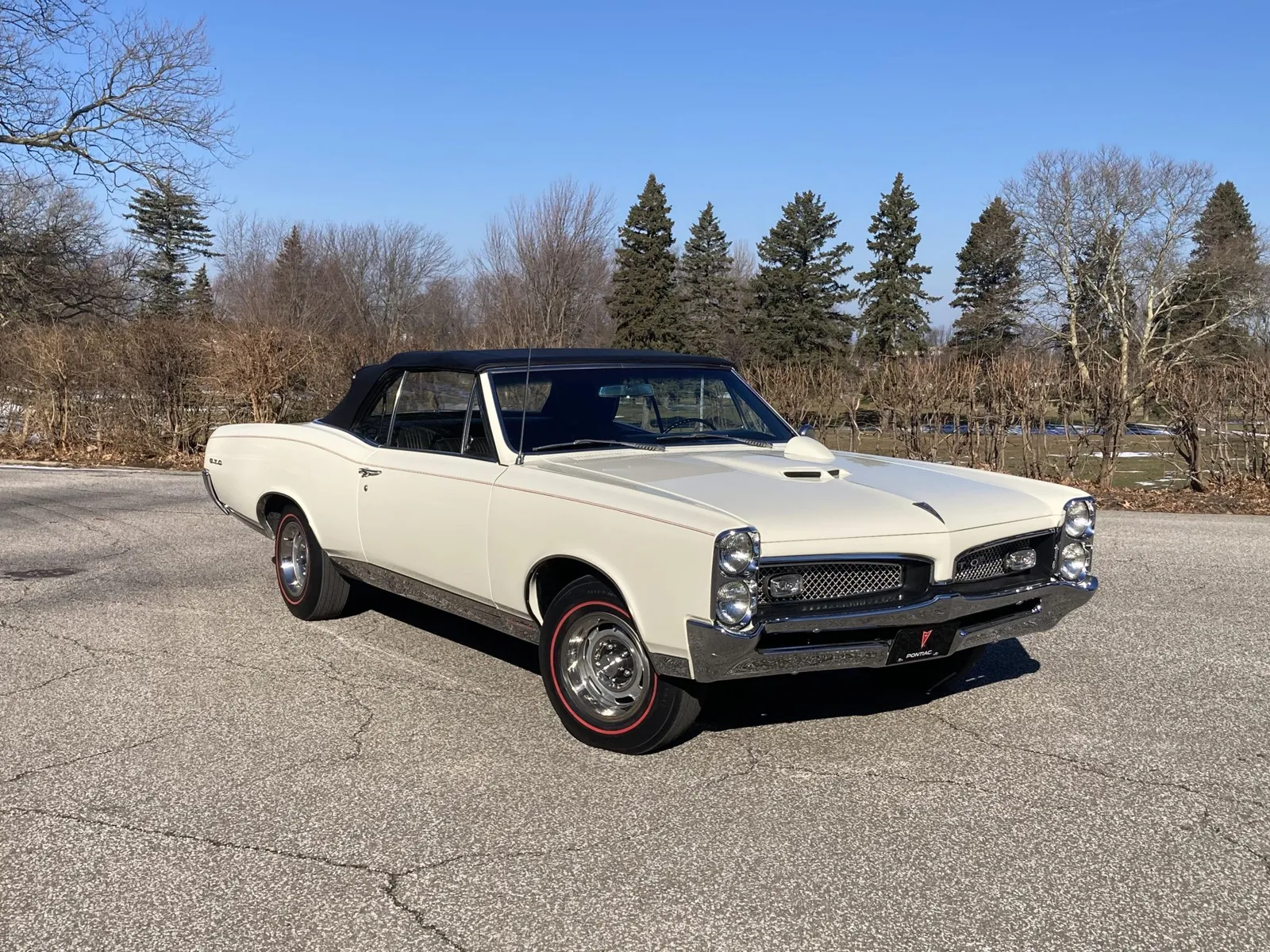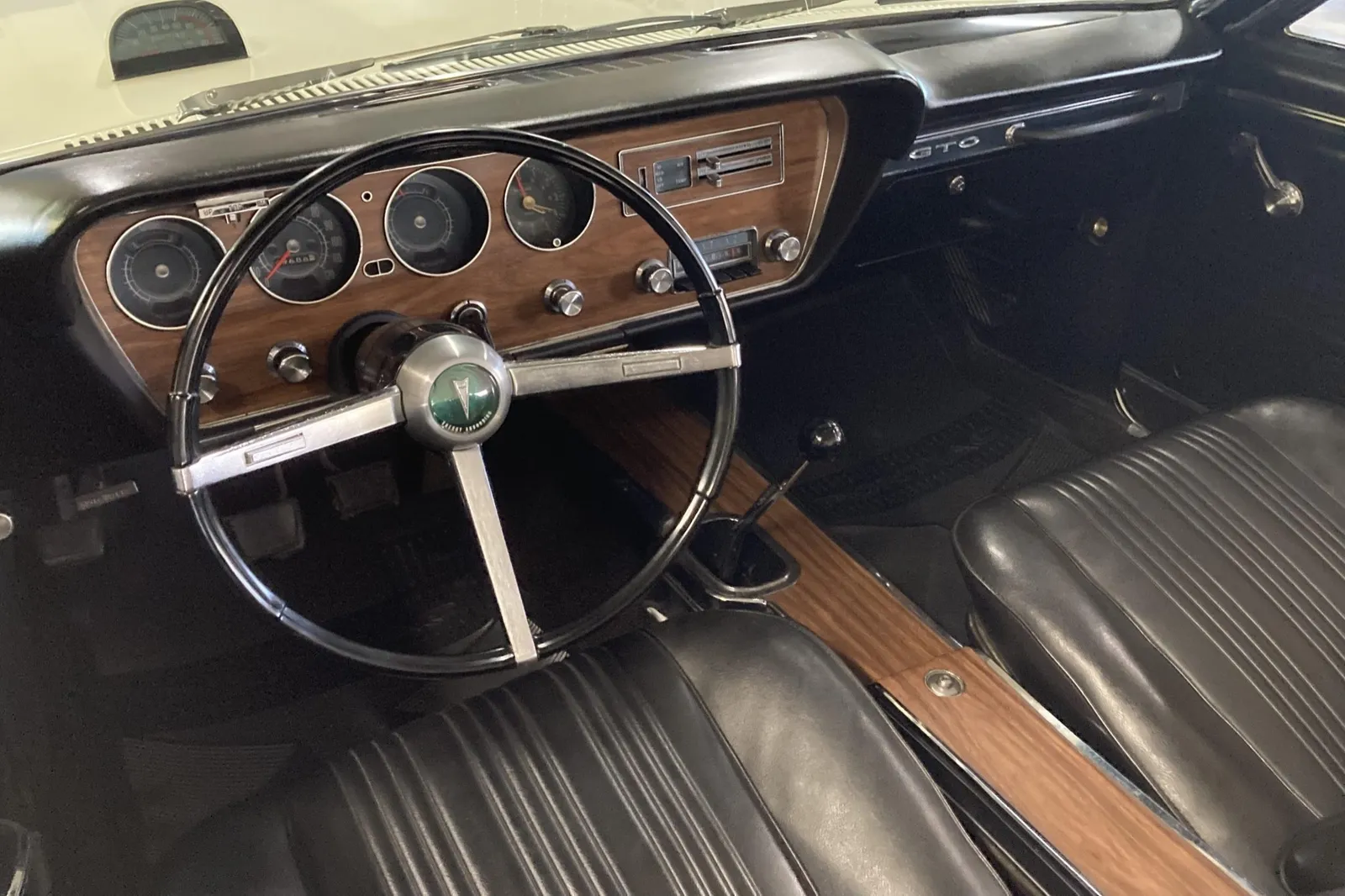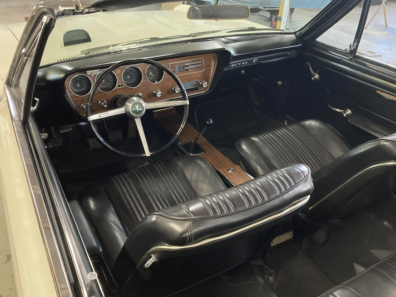 Pontiac GTO convertible finished in Montego Cream over black vinyl and equipped with a 400ci V8 and four-speed manual transmission.