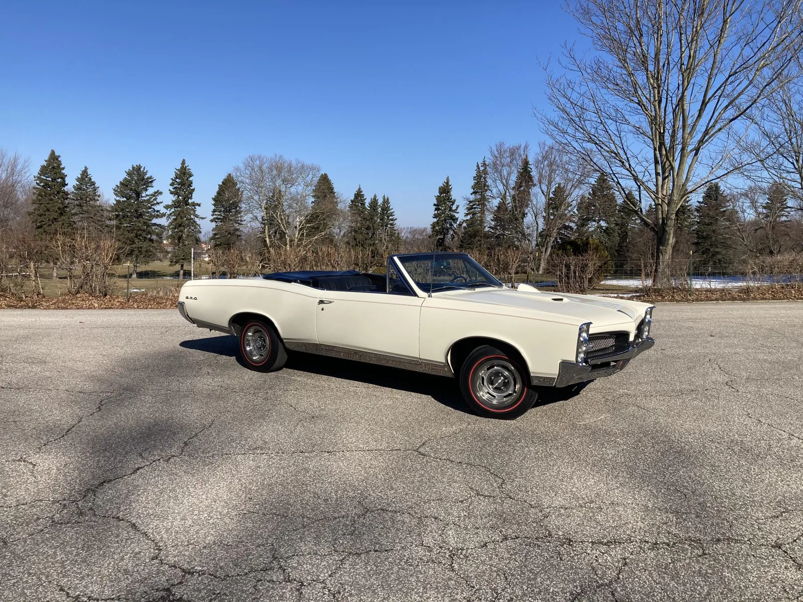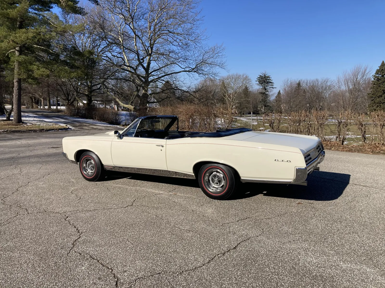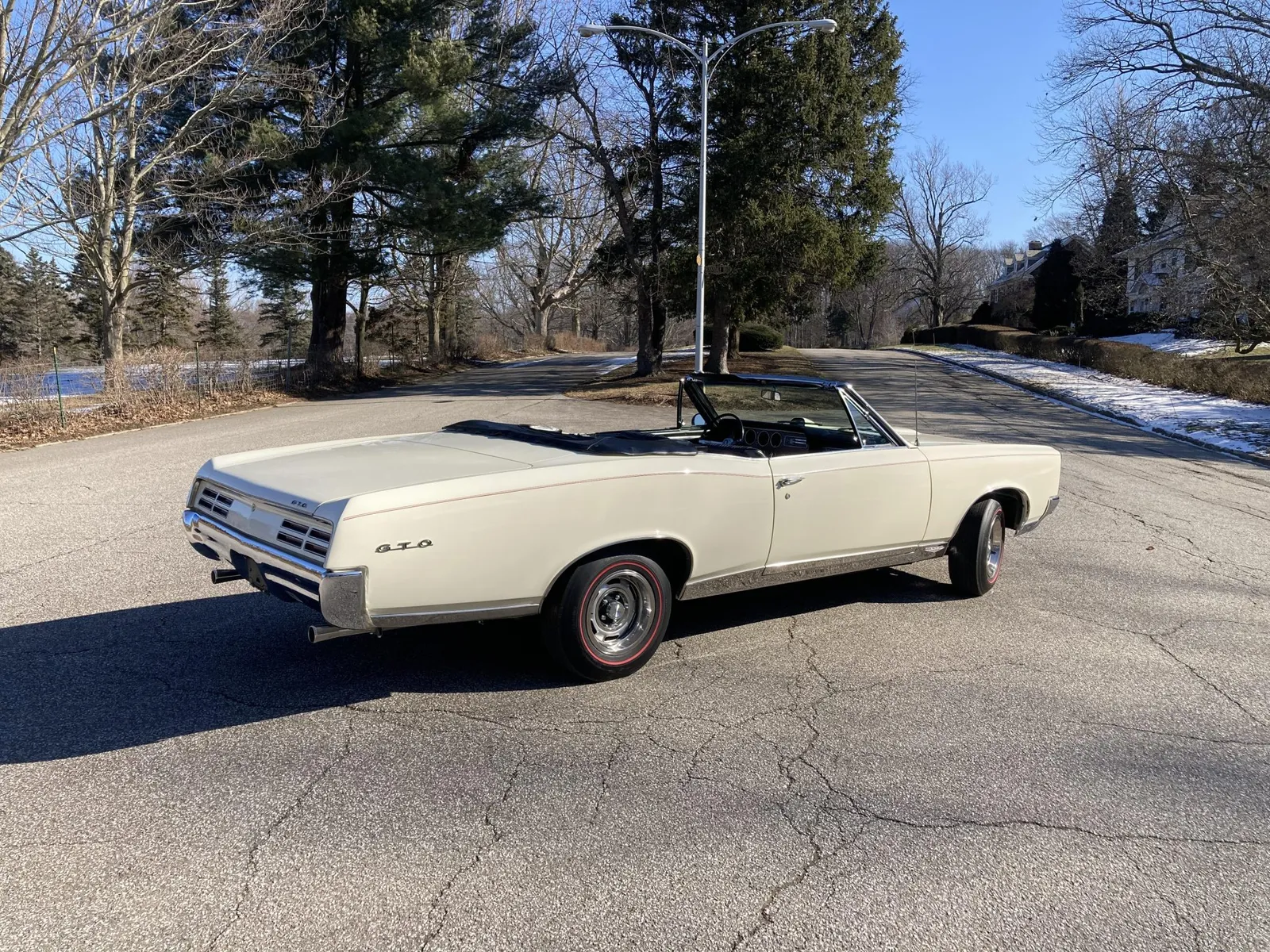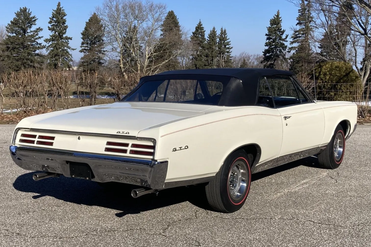 Pontiac GTO convertible finished in Montego Cream over black vinyl and equipped with a 400ci V8 and four-speed manual transmission.