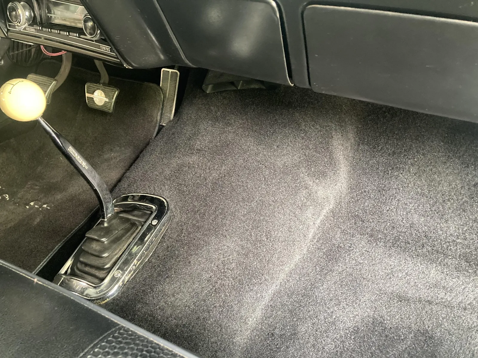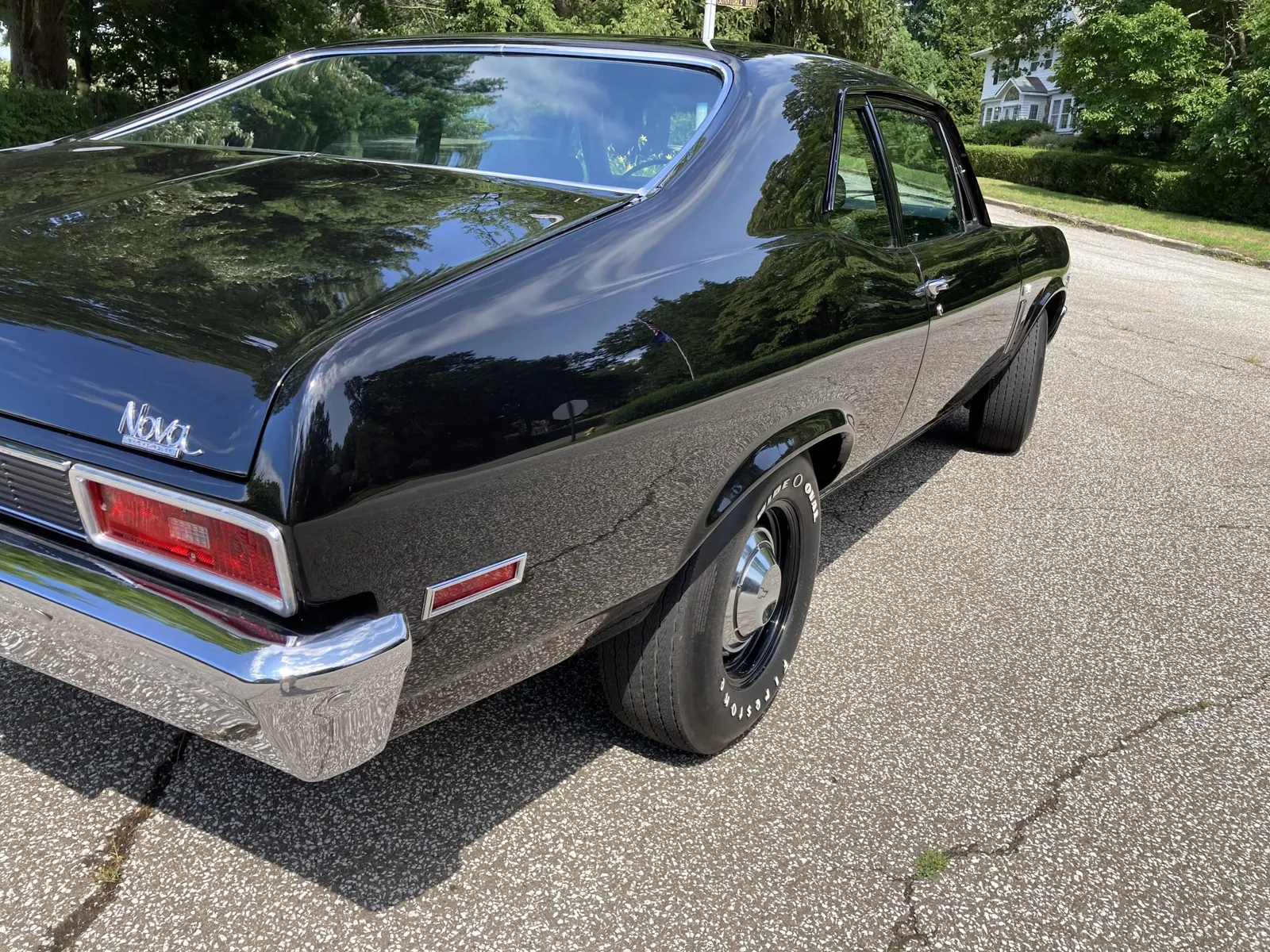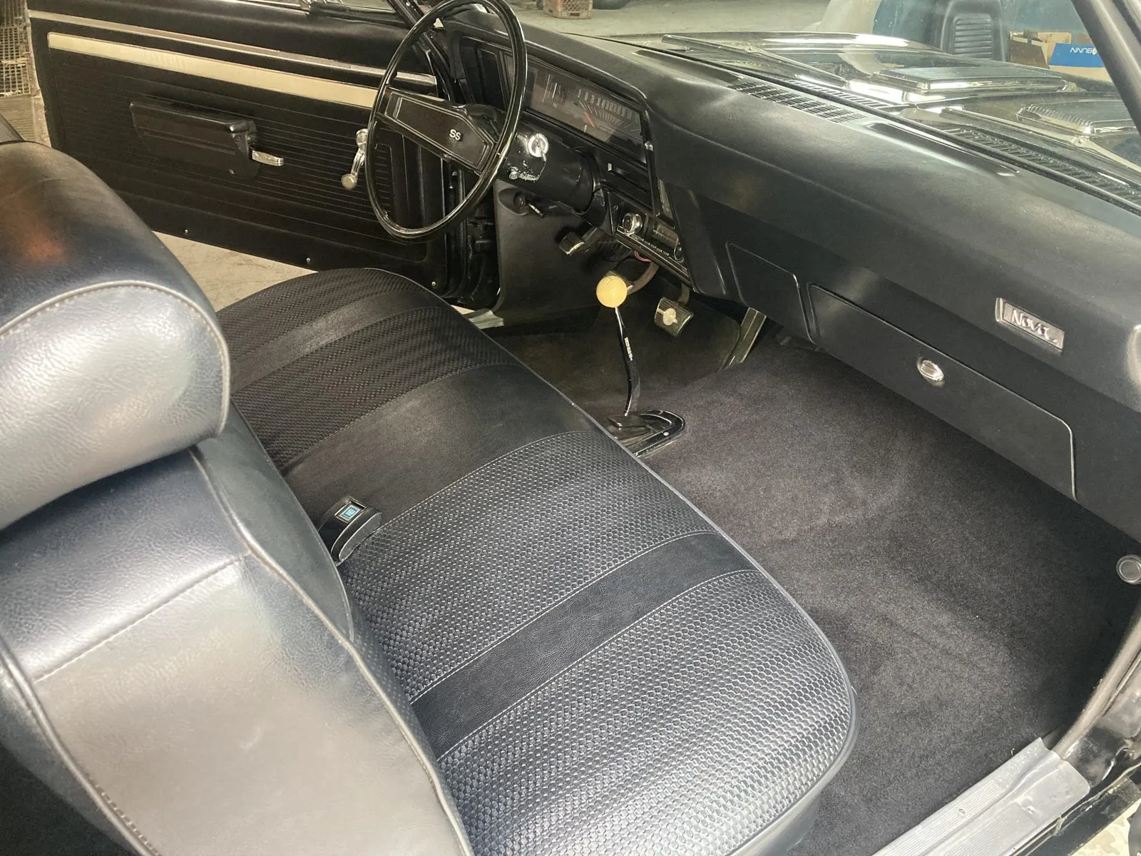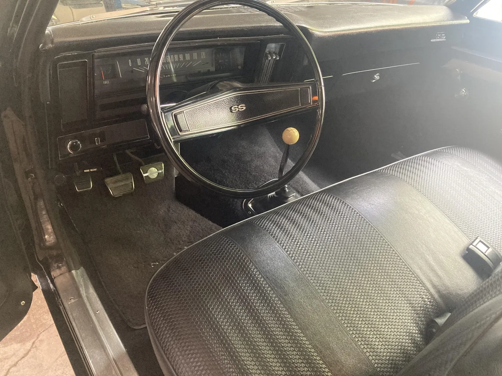 Nova SS finished in black over black vinyl, powered by a replacement 396ci V8 and a Muncie M21 close-ratio four-speed manual transmission.