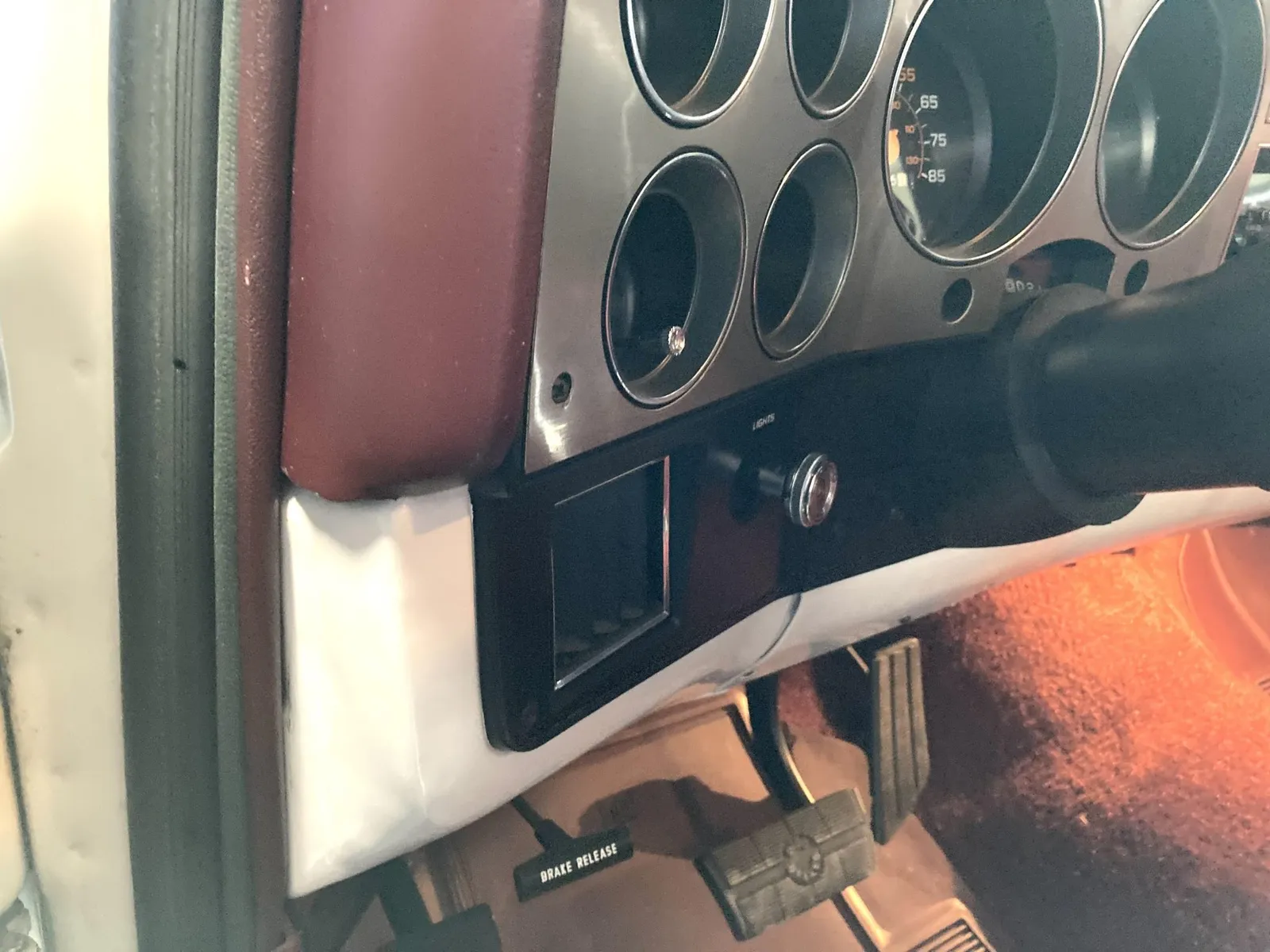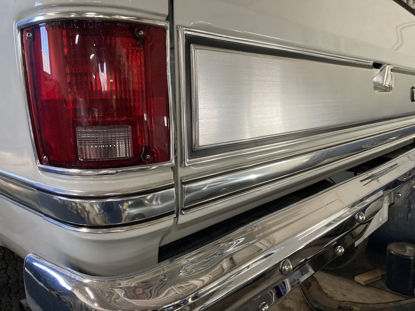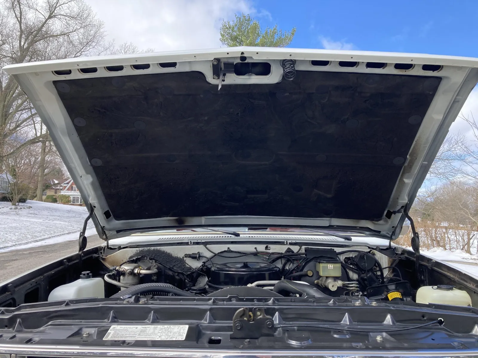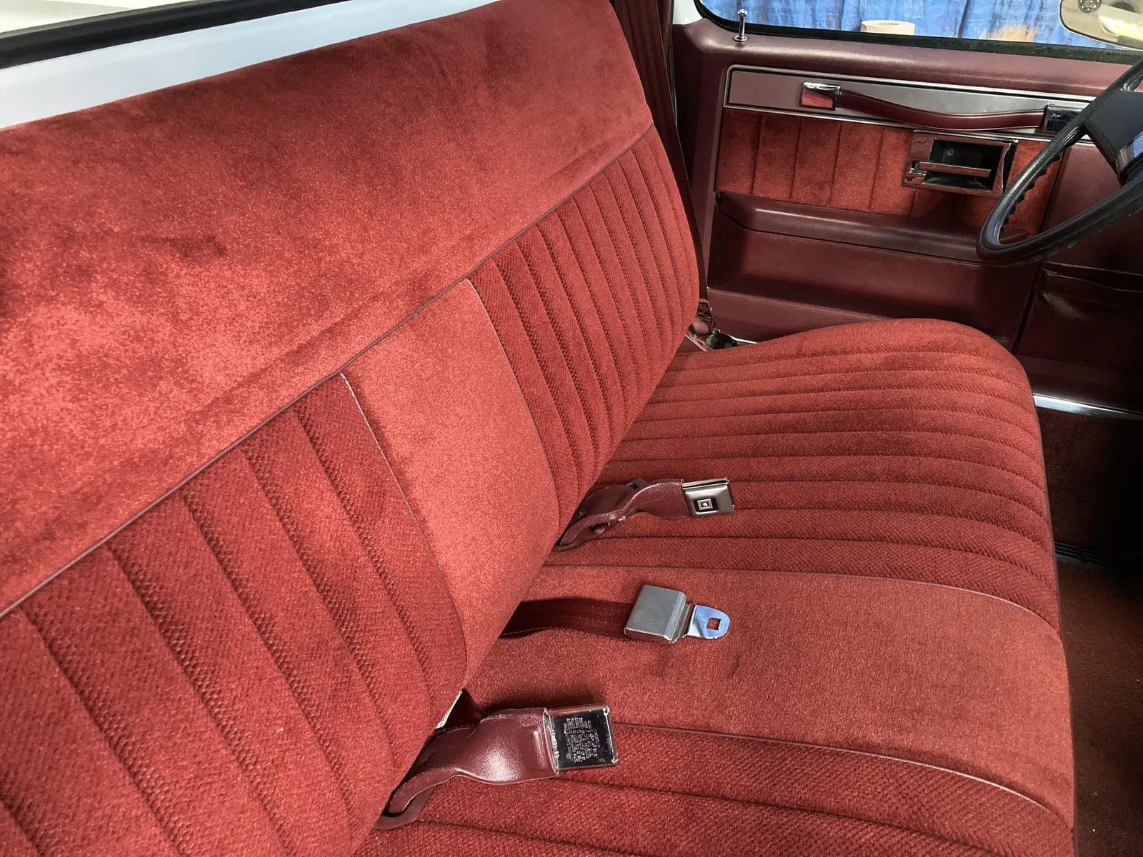 Chevrolet C10 Silverado pickup finished in white over red cloth upholstery and equipped with a 305ci V8 and a four-speed automatic transmission.